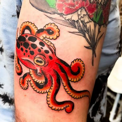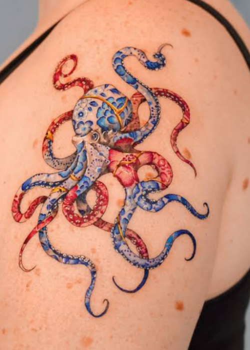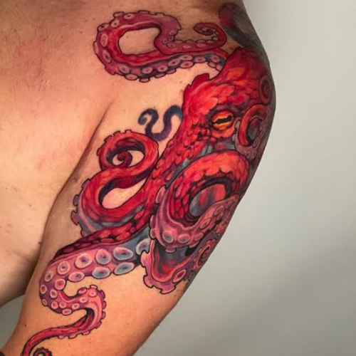 Let’s start with a large octopus sitting majestically on your shoulder. It also creates a cool upper-arm sleeve effect.