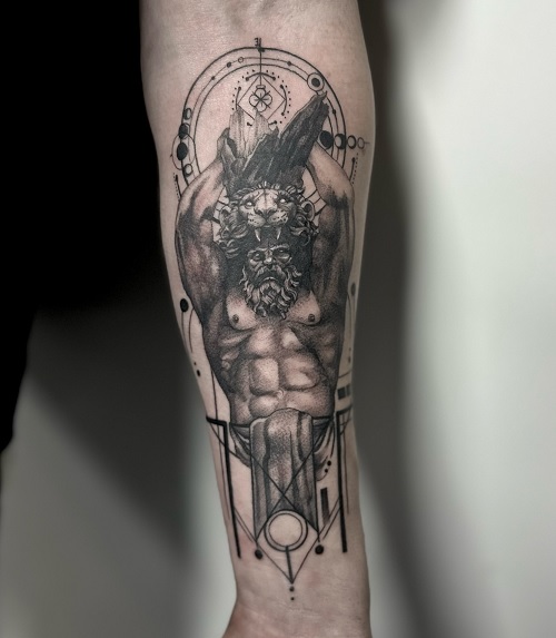 Zeus’ arm tattoos symbolize power, wisdom, and divinity. So, why not get this one done if you are fascinated by him?