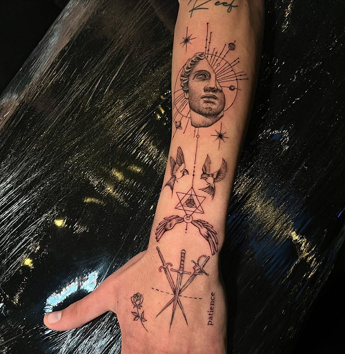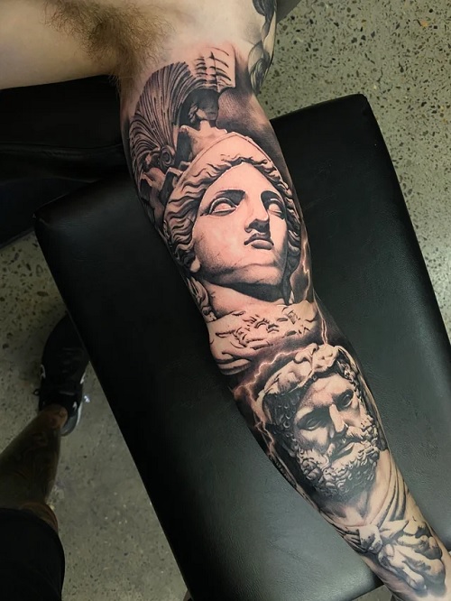 Zeus’ arm tattoos symbolize power, wisdom, and divinity. So, why not get this one done if you are fascinated by him?