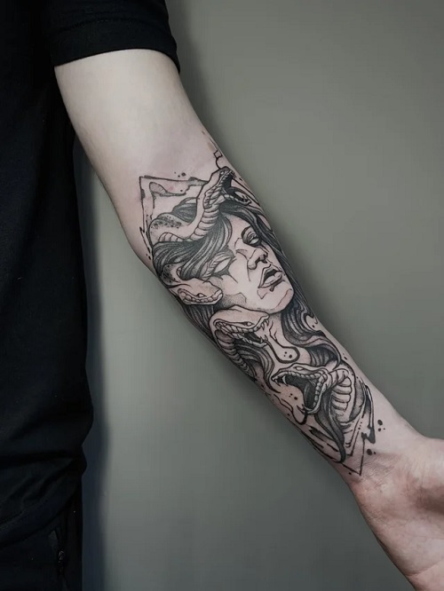 Some tattoos are meant to be personalized. So, if you are someone who is fascinated by the idea of a Medusa tattoo and her story, get this one done for you.