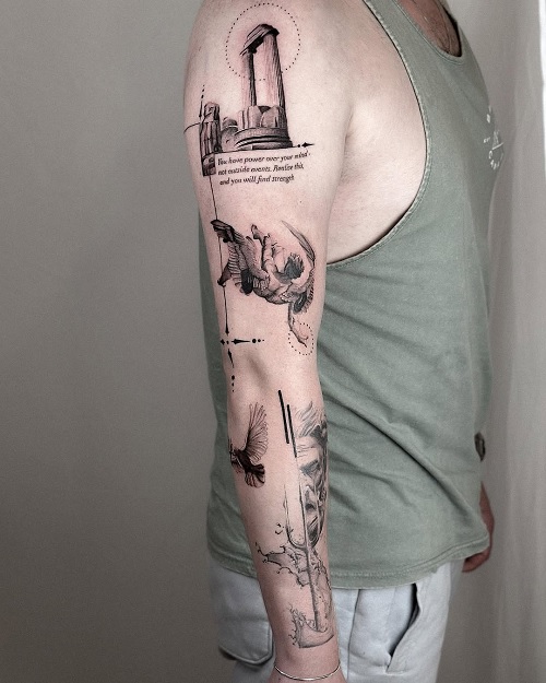 Just look at this sleeve tattoo idea. No words can explain how amazing it looks. Don’t think much, just get it done.