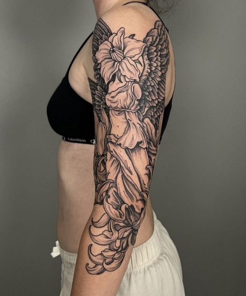 Don’t be surprised by the looks of this ink idea. It displays a bold sleeve of roses, symbolic of love and passion.
