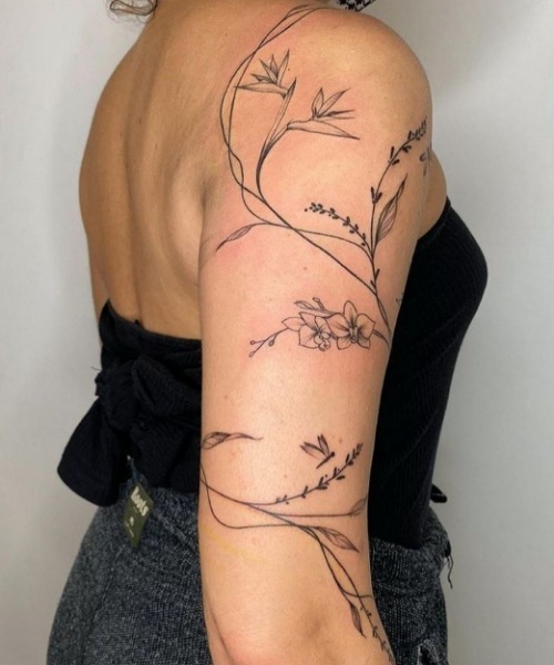 Have a look at this fine-line flowy sleeve. It is a fabulous ink that both men and women can wear and still look equally stylish.