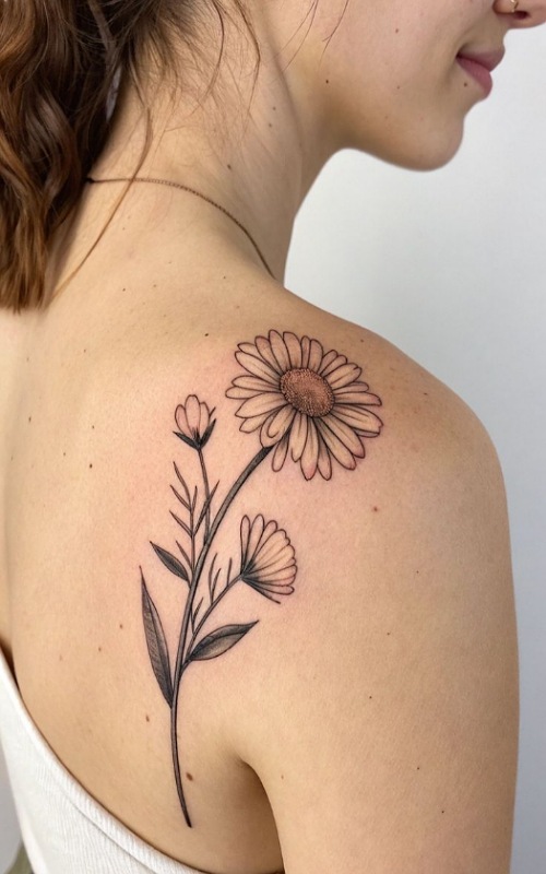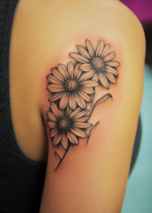 A daisy tattoo on the shoulder is something that will never go out of style. So, do try it out, and here are more shoulder inks for you.