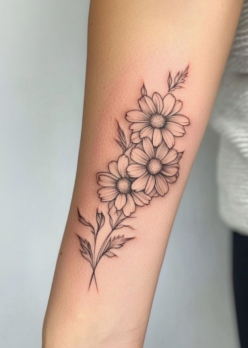 13. Trio of Daisies Arm Tattoo