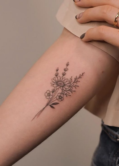 For those born in April, rejoice because the daisy is your birth flower for the month. Why don’t you celebrate that fact with this fine-line tattoo?