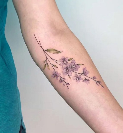 A small flower tattoo print is always welcome. It looks simple yet cute, right? You can even get it in lavender color if you want something colorful!