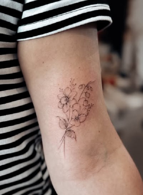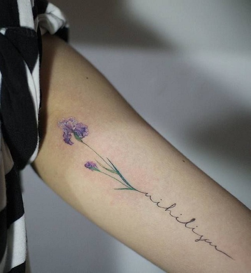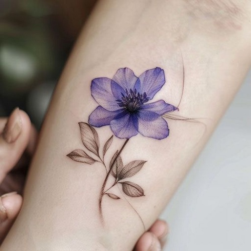 Birthday around the corner? Try this birth flower tattoo for February. With purple-coloured petals and a black stem, it stands out from any other simple tattoo.