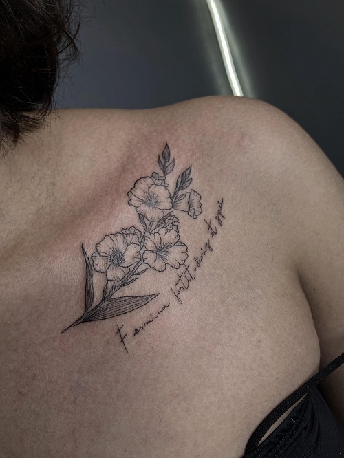 If you like wearing off-the-shoulder dresses and want to elevate your look? Try this collarbone floral tattoo. The design will look so cute with your dress!