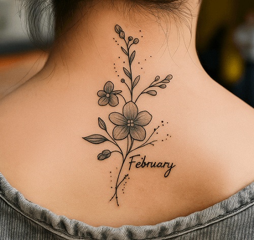 February is the month of love. In this month, even though mostly roses are given, violets are actually the birth flower. Here is the spine tattoo design.