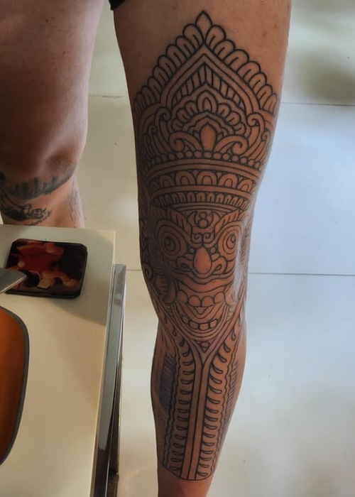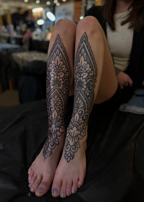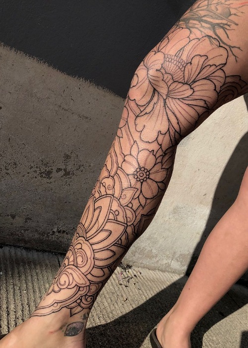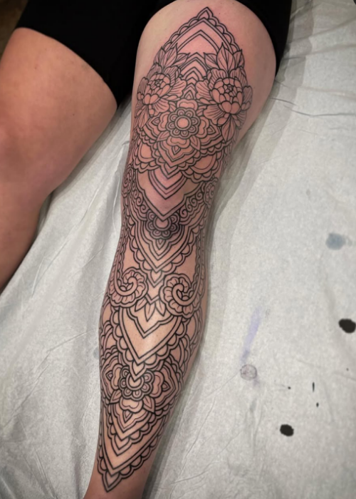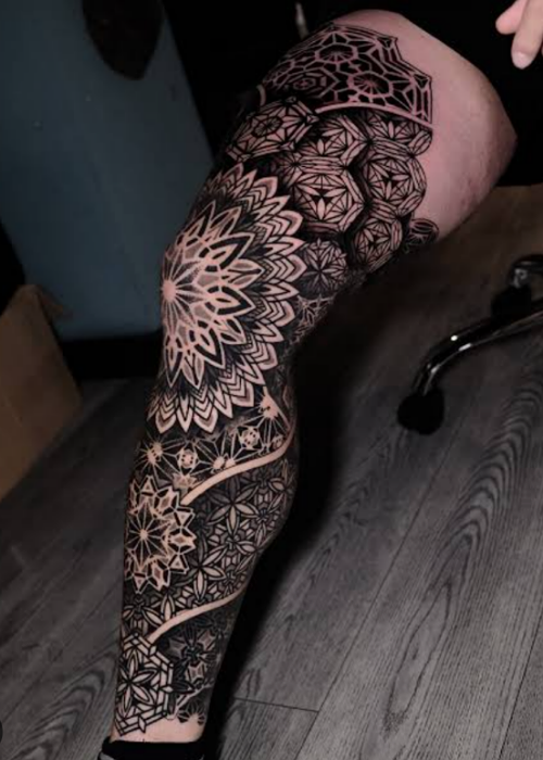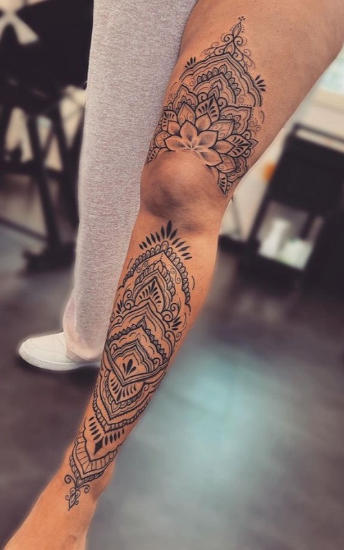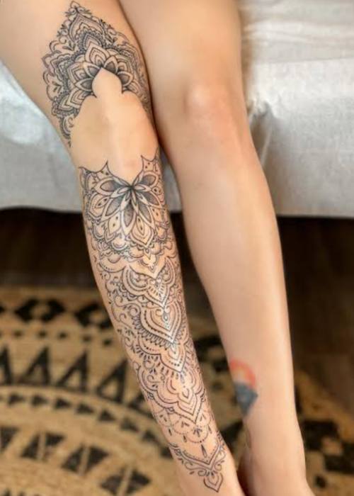 You can never go wrong with intricate swirls and an attractive mandala pattern covering your leg like this!
