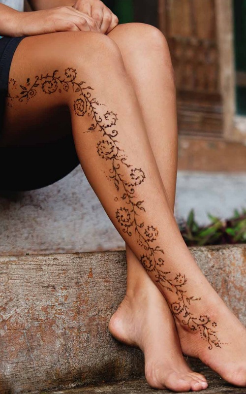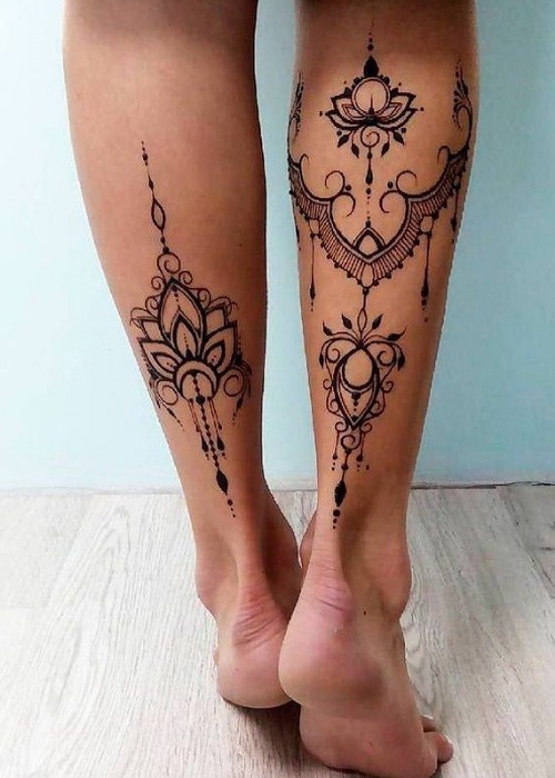 Nothing is better than getting a matching henna leg tattoo that gives off a chic look. What more could you ask for?