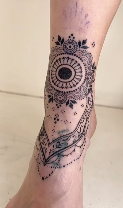 Let’s end this guide with a traditional-looking henna art for the ankle that will have everyone looking at it again and again.
