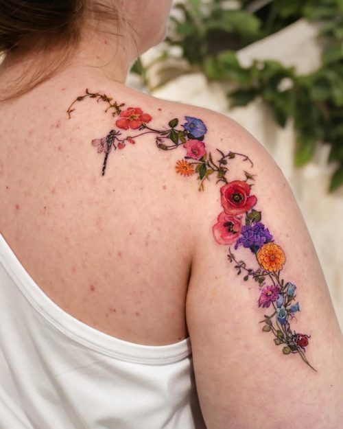A shoulder flower ink cascade is something to think about, as it is always on trend. Do try it!