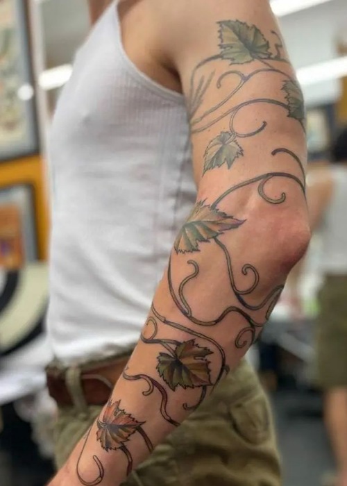 Wrap up your arm in a vine with leaves to create a realistic 3D tattoo. For more 3D ideas, check out this guide.