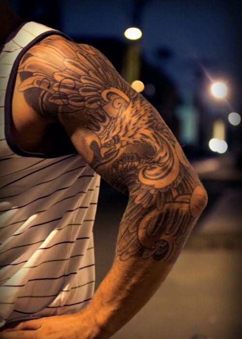 Try out this excellent body art. It has a majestic eagle-like creature with intricate scales and makes the perfect, powerful tattoo.