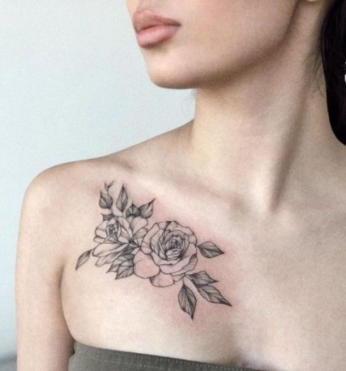 It’s never too late to get not one, but two similar floral tattoos, one on each collarbone. Here’s one for you.
