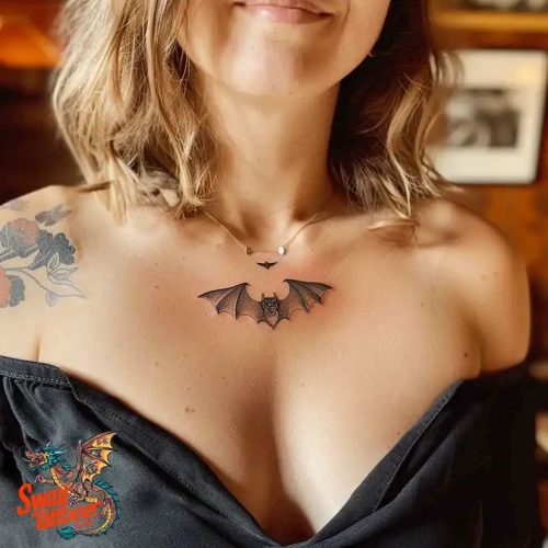 Don’t miss out on this minimal yet spooky tattoo of a bat. It symbolizes the ability to navigate darkness and the unknown.