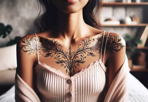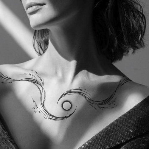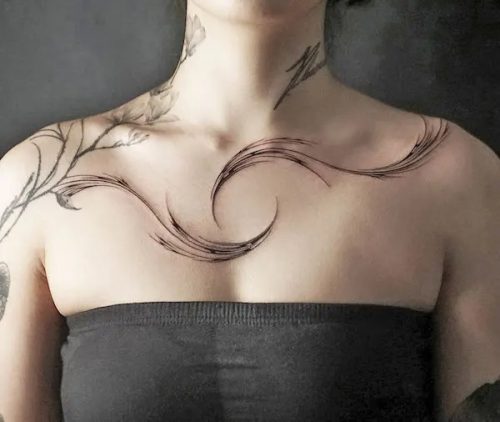 Now here is a piece for the ladies who love getting feminine inks. This art will enhance your collarbone and give it a lovely look.
