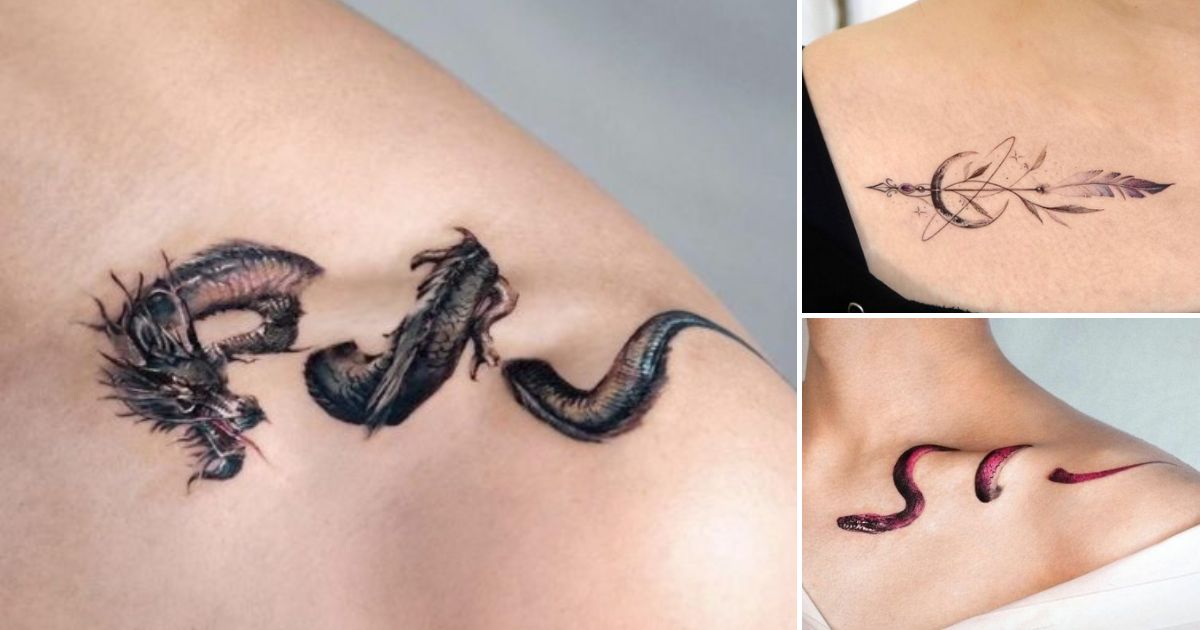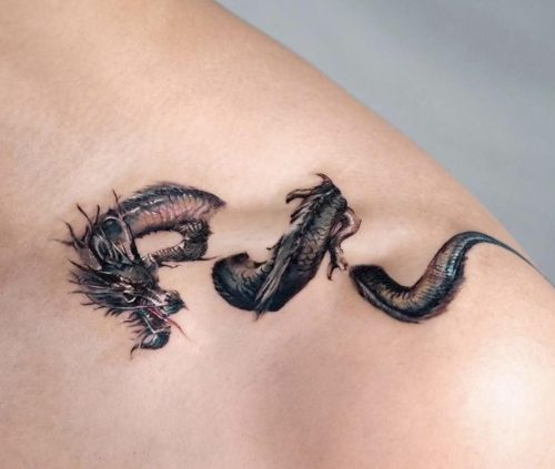 Who doesn’t love dragons? We surely do, and this 3D tattoo shows a dragon wrapped around your collarbone. Simply breathtaking.