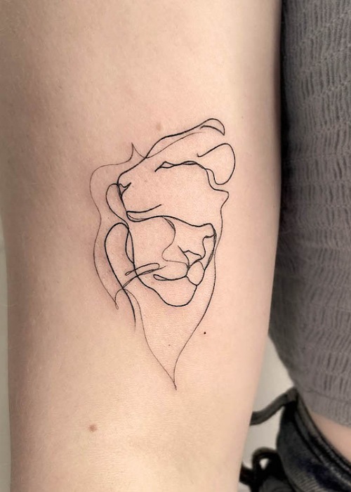 Here’s a single-line tattoo design that pays tribute to one of the most popular series, “The Lion King”.