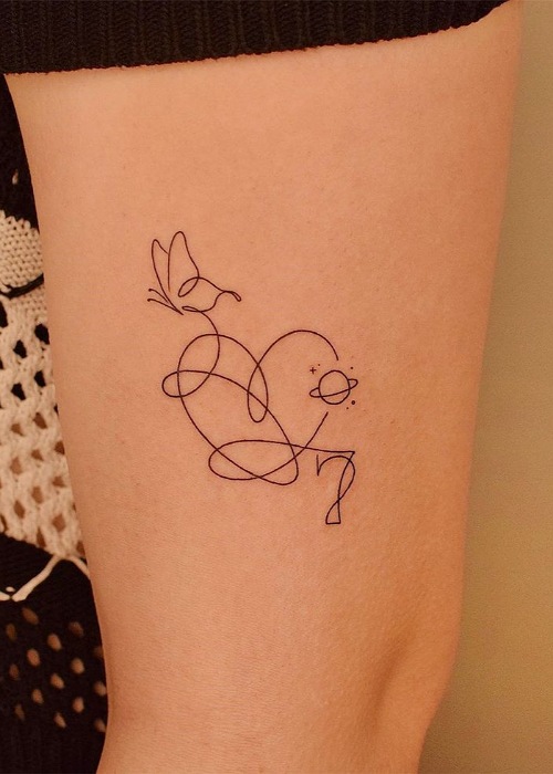 You cannot miss out on this tattoo idea if you’re an ARMY. This tattoo idea is a tribute to the boy band BTS.