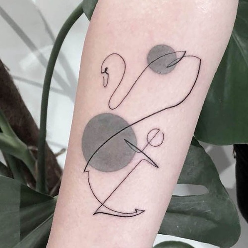 When an anchor tattoo is combined with a swan’s silhouette, it symbolizes a loving relationship that brings stability and security.