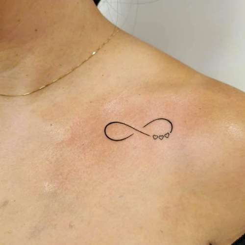 There is nothing as dainty and beautiful as a collarbone tattoo. So, here’s one infinity piece with cute tiny hearts across it. Beautiful, right?