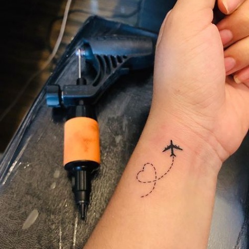 Did you know you could get a travel-inspired plane with a dotted heart? Isn’t it the perfect wrist tattoo idea?