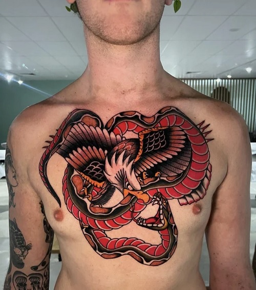 With a fighting eagle and snake inked like this, you will be extra confident while going to the beach. That’s how cool this idea looks.