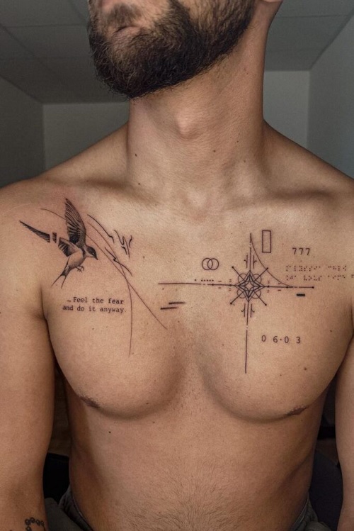 Let your chest become a sketchbook where you can ink designs like this. It looks bold and aesthetically pleasing in its own way.