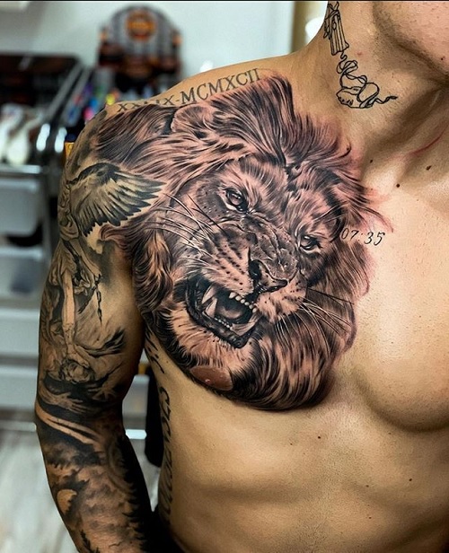 Be proud and get this bold lion done. The idea starts at your chest and goes all the way down, creating a sleeve tattoo as well. Interesting, isn’t it?