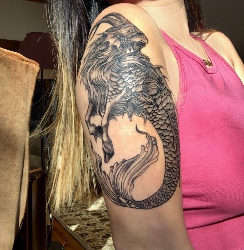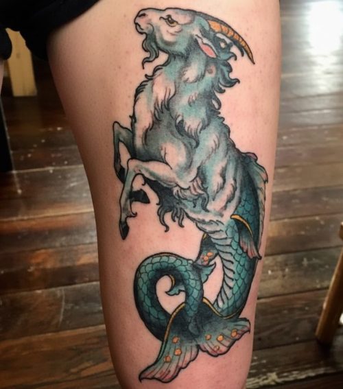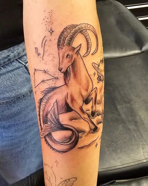 In this Capricorn tattoo idea, you can see a large design that is for those who are not afraid to embrace their ambitious and hardworking selves.