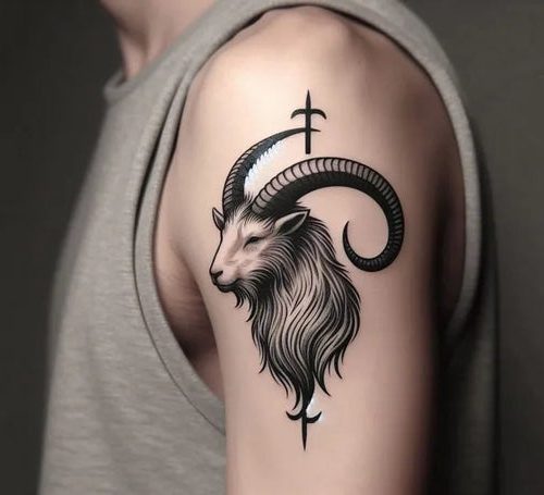 Well, this one is a cool design. The straightforward meaning behind this tattoo could be that those born under this earth sign are highly respected for their determination.