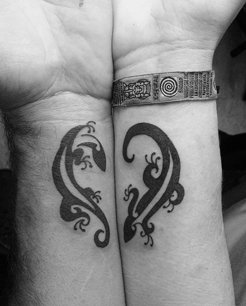 Don’t go for basic heart designs, and instead go ahead with this tattoo that looks like lizards taking the shape of a heart—the perfect bold body art.