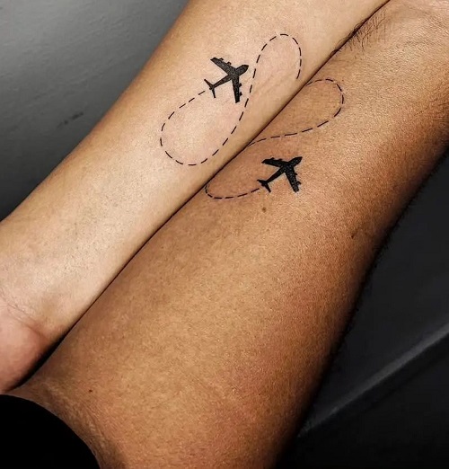 Share the love of travelling with your partner and get this dotted-style heart, featuring two flying airplanes—a beautiful idea to pursue.