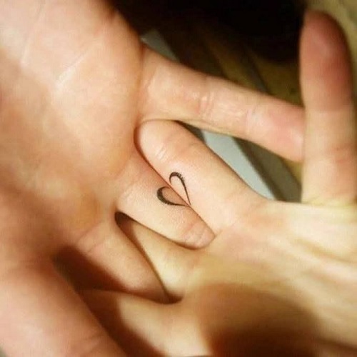Want to soft-launch your relationship? Wait no more and get this minimal finger tattoo idea that makes a tiny heart every time you connect it.