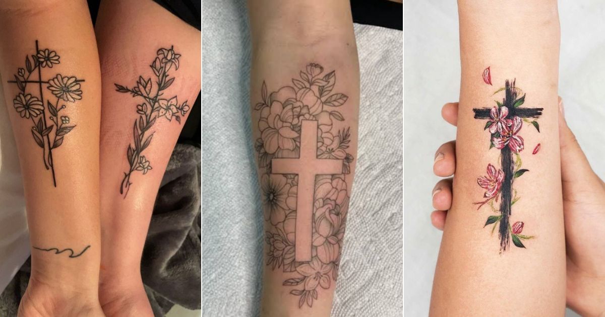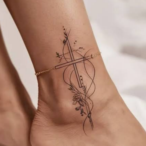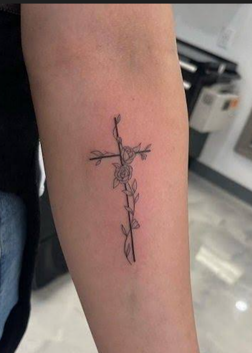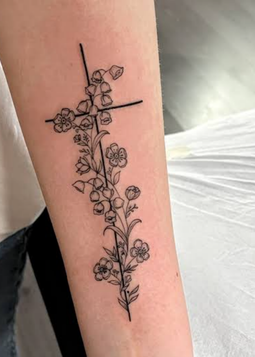 Let faith meet nature with these Cross with flower tattoo ideas that symbolize faith, love, and spiritual growth, rendered in gentle inks.