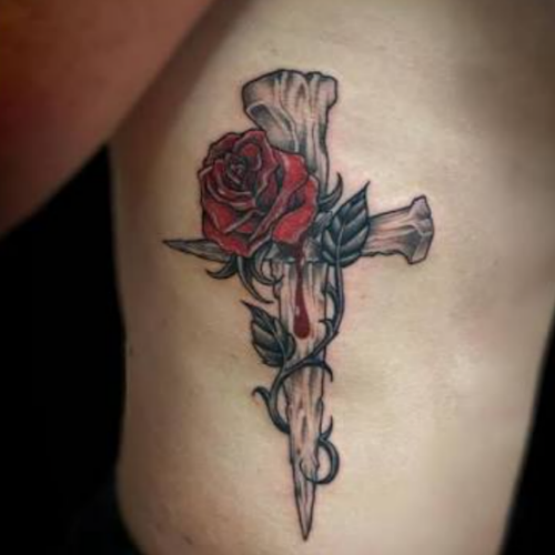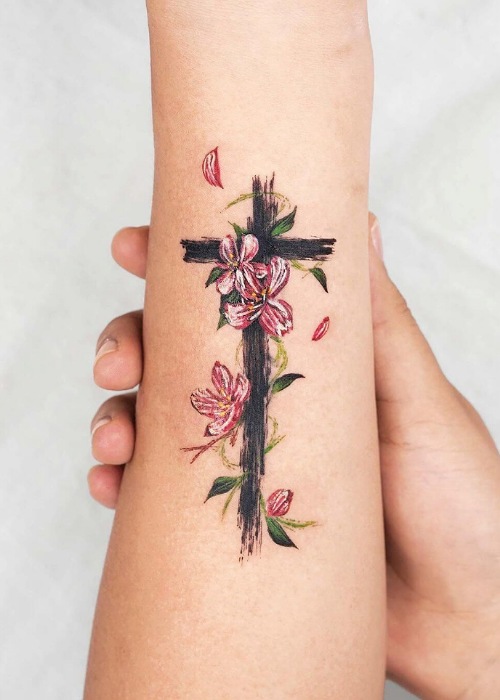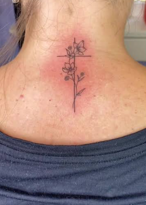 10. Cross With Flower Tattoo Meaning