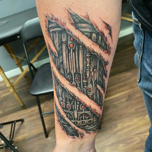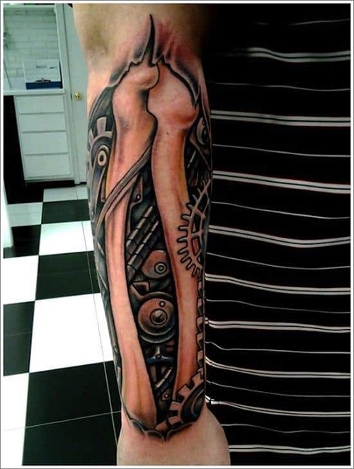 10. Biomechanical Arm Tattoo
