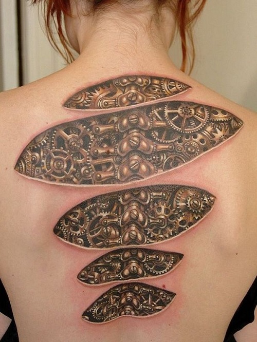 18. Mechanical Back Tattoo for Women