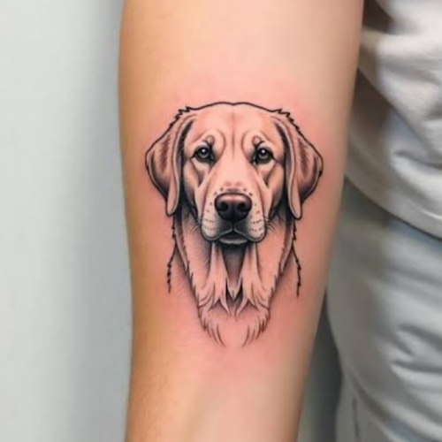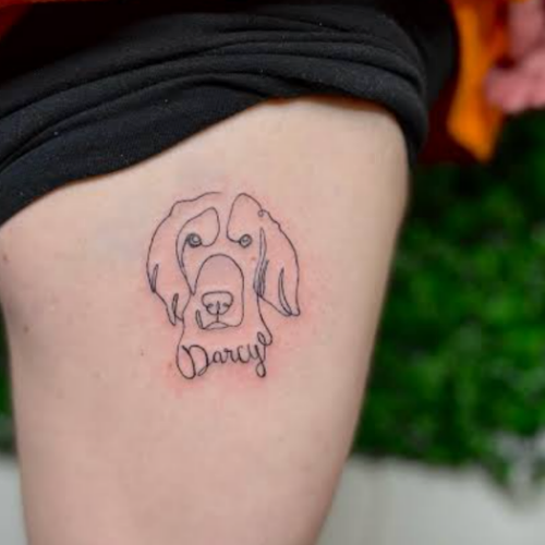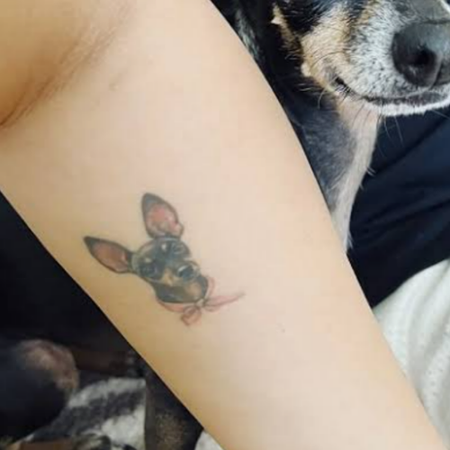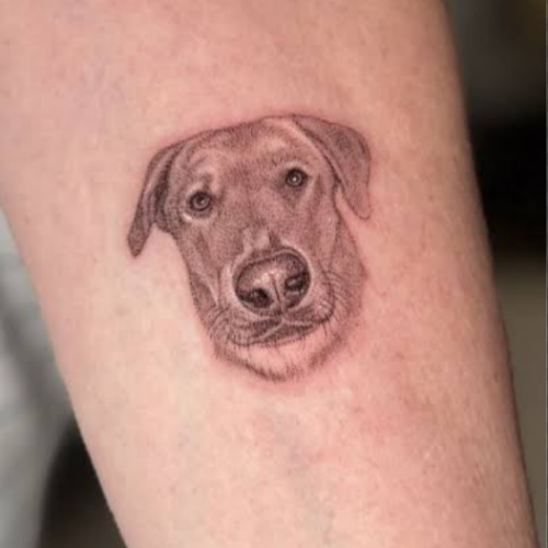 You could get a lovely tattoo in detailed ink of your sweet dog looking right at you with a soft look.