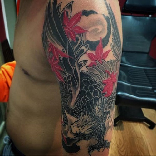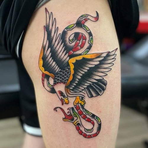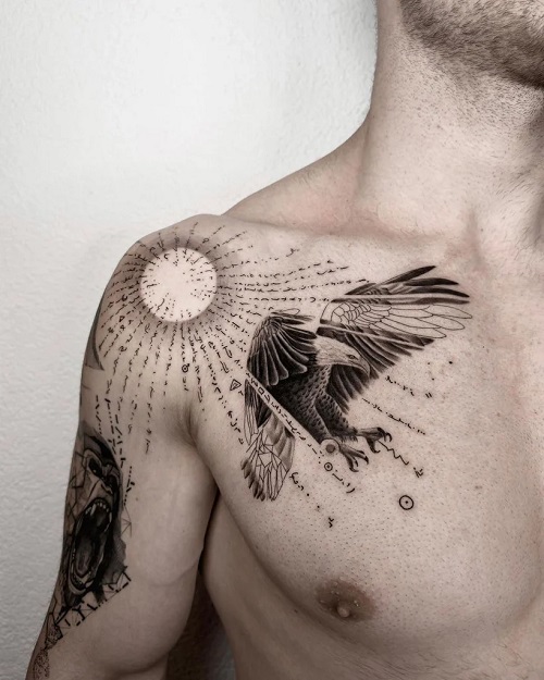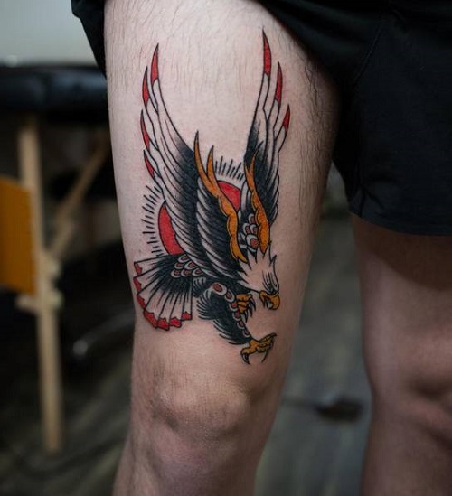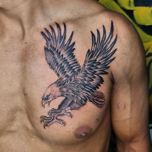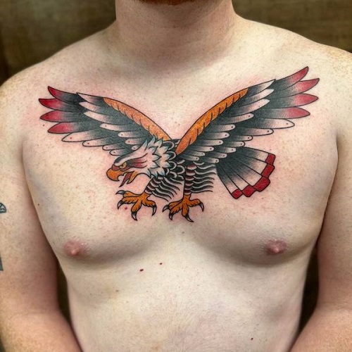 Here’s a colorful traditional eagle on the chest, representing resilience and power. Perfect, isn’t it?