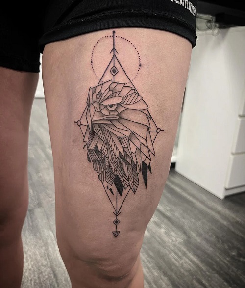 Walk in style with this thigh tattoo design—a statement piece despite its small size.