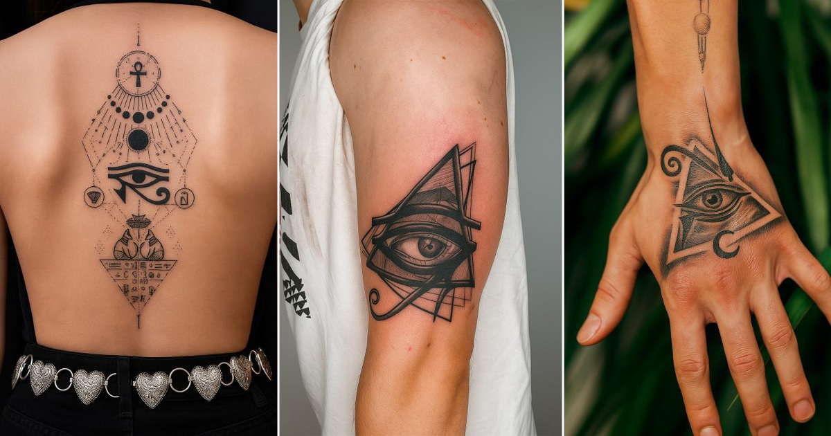 Learn about the meanings, symbolism, and roots of the Eye of Horus and Eye of Ra in this guide to Egyptian eye tattoo ideas.
