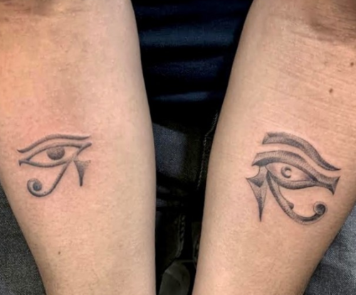 Now this is the perfect balance of both tattoos—the right hand for the Eye of Horus and the left for the Eye of Ra.