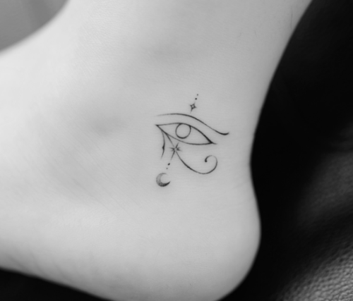 Let’s be honest. Who doesn’t love some dainty inks that are in fine line? Do check out this Eye of Horus ankle tattoo.