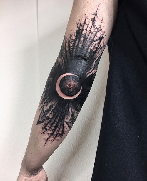 5. Dark Blackwork With a Crescent Moon