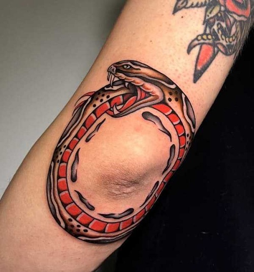 Having an elbow tattoo is a bold choice, and an ouroboros ink design works particularly well for the feisty souls. It symbolizes eternity and renewal.