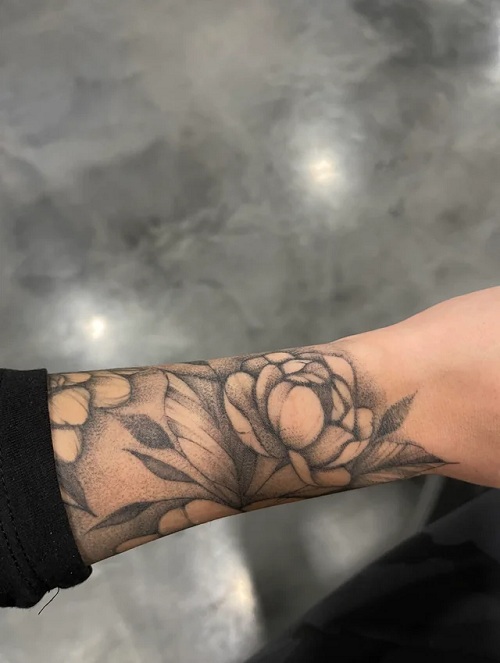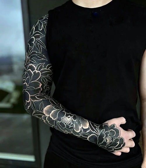 How about a maximalist tattoo idea that gives a cool and edgy vibe? Here’s a floral sleeve idea for you.